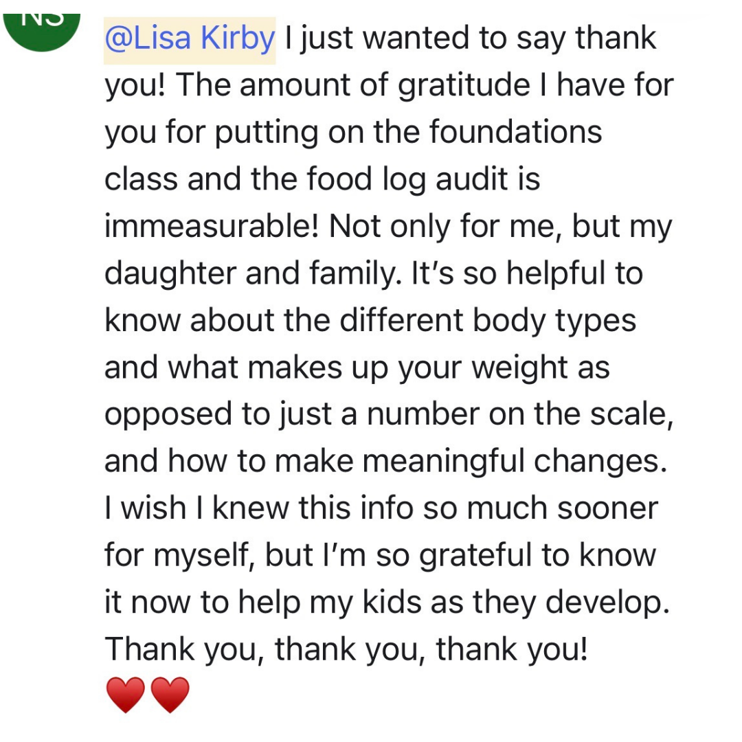 Personalized Feedback: Ask questions during live calls or inside the private group chat. You’ll receive guidance on your meals, habits, and daily routines so you can apply what you’re learning in real time.